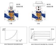⑵、當直行程電動執行器接受控制信號使閥軸延A—B向上下運動(或角行程電動執行器接受控制信號使閥軸延R向旋轉)時,P2、P3間的開度也隨之變化。由于不管系統壓差(P1-P3)如何變化,P2、P3間的壓差(P2-P3)始終不變,因此對應于任一開度位置,其輸送的水流量都是一定的,并且電動調節閥實際的流量特性曲線與其理想的流量特性曲線是一致的,沒有偏離。因此這種電動調節閥較傳統的電動調節閥具有更好的調節特性。
