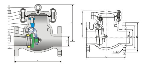 H44H-16/25C鑄鋼旋啟式止回閥結構與特點: